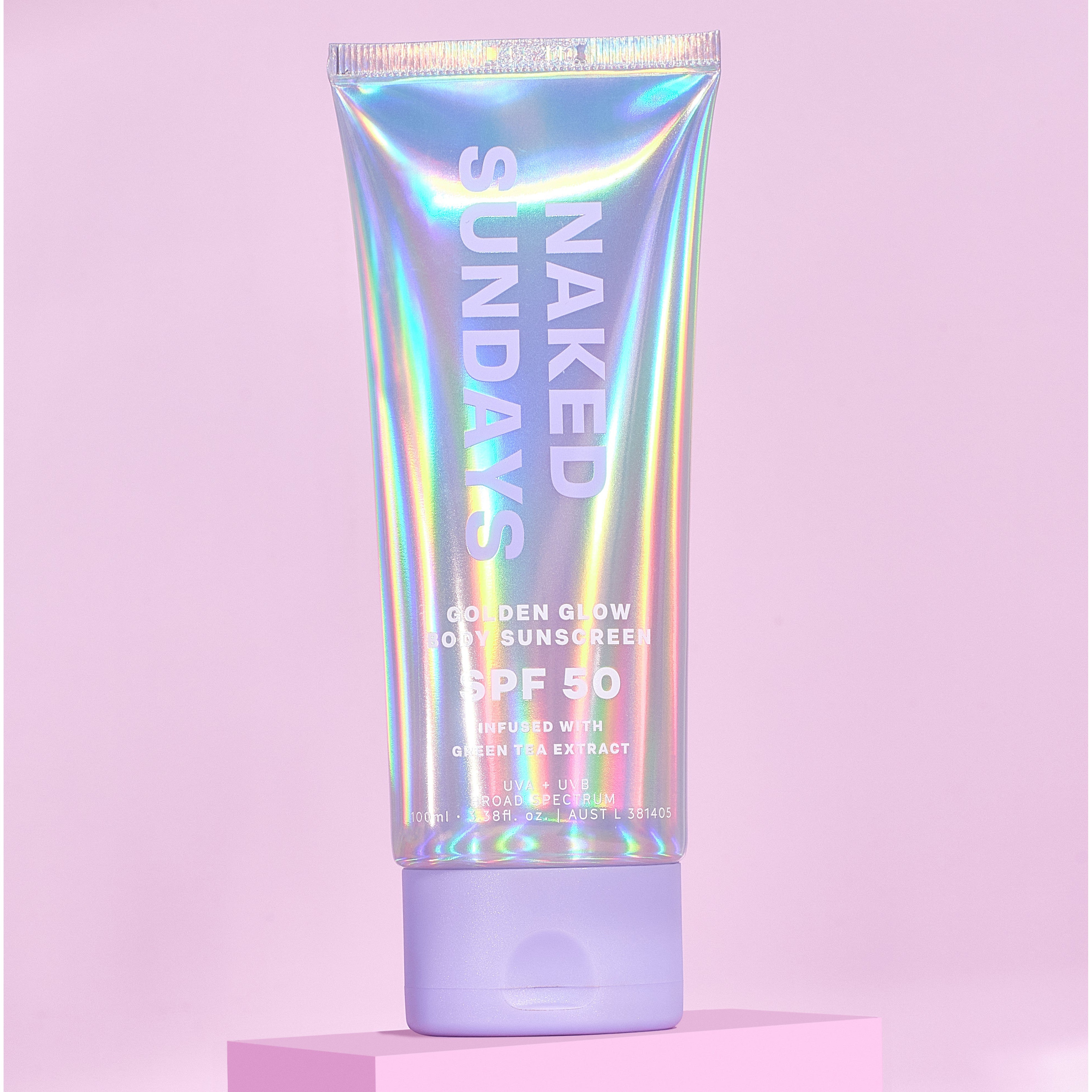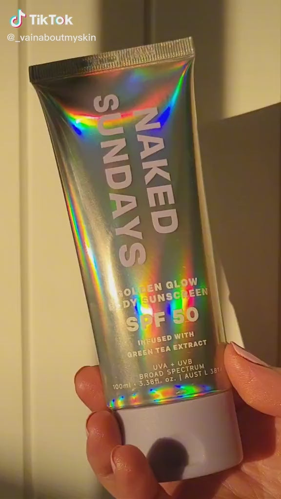 Introducing your SPF50 Golden Glow Body Sunscreen infused with golden flecks for illumination & Green Tea extract for your firming Body SPF!