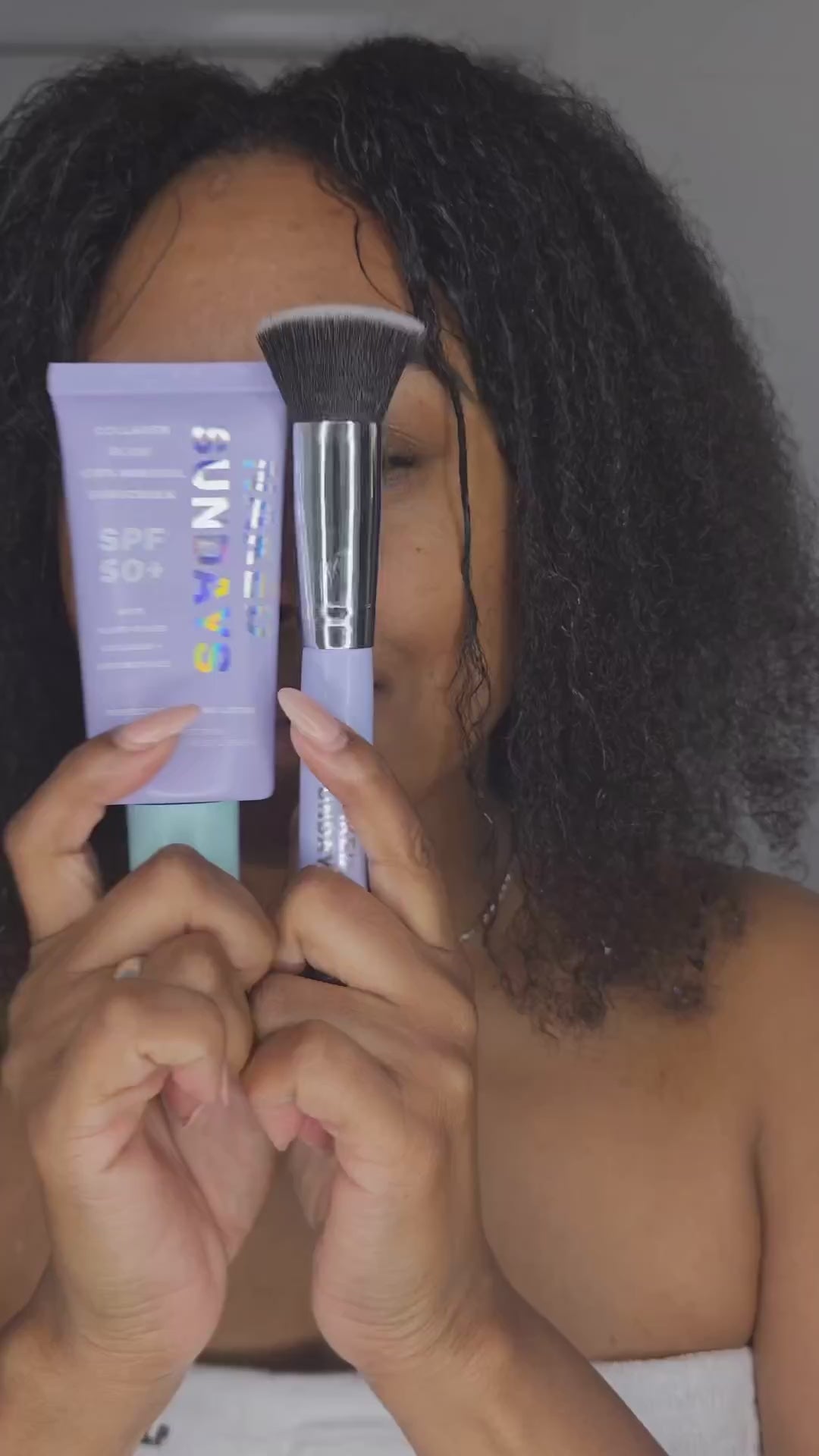 - Apply a thick layer of this best SPF primer on cleansed, dry skin using our SPF BFF brush.