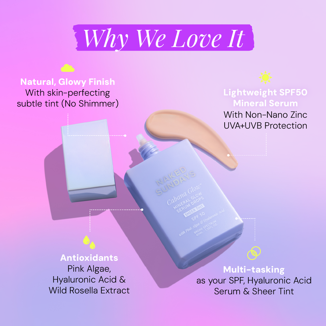 CabanaGlow™ SPF50 Mineral Glow Serum Drops - Sheer Tint