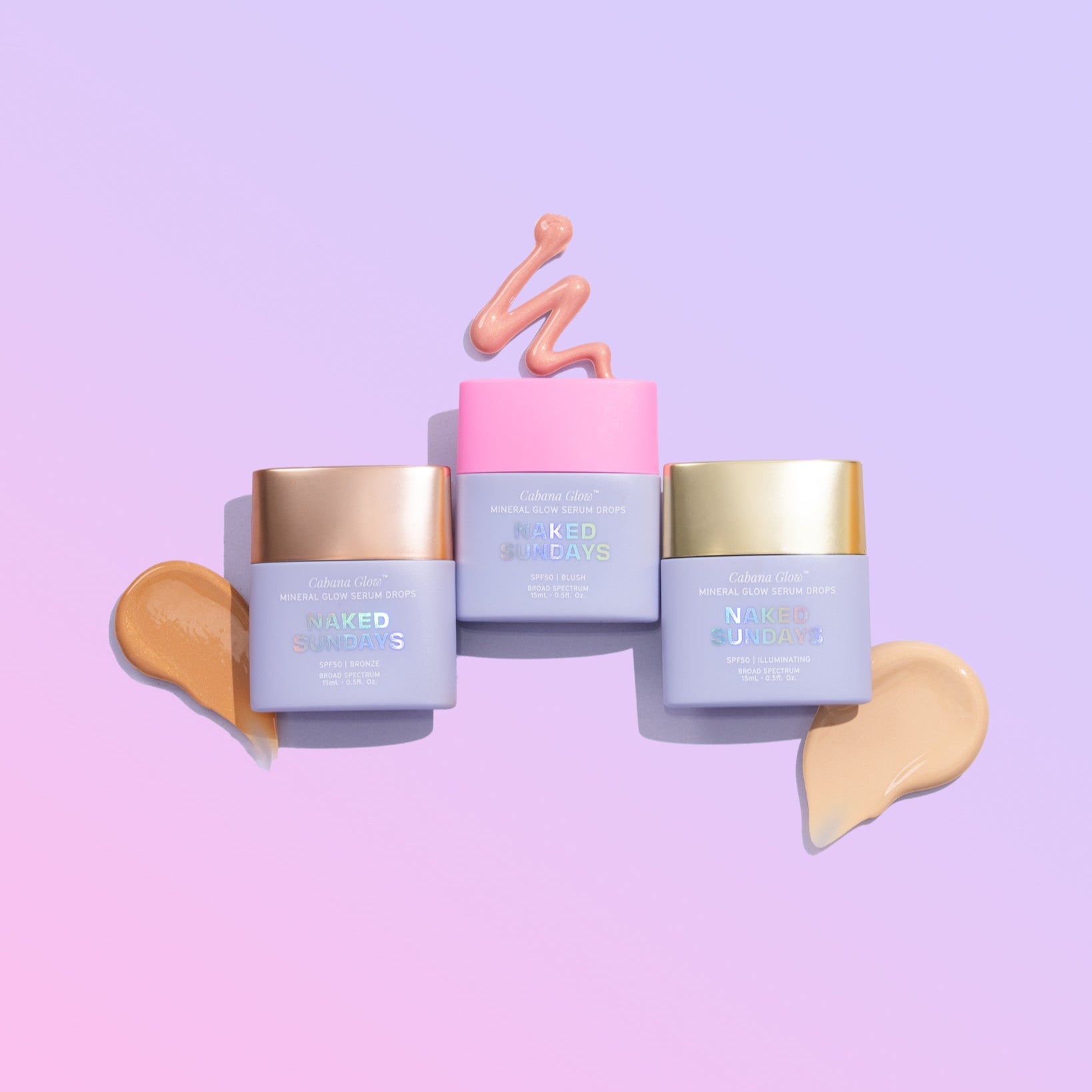 Bundle contains our NEW Limited Edition Pink SPF Make-Up Case and 3 x Mini CabanaGlow SPF50 Mineral Glow Serum Drops in Bronze, Blush, & Illuminating.