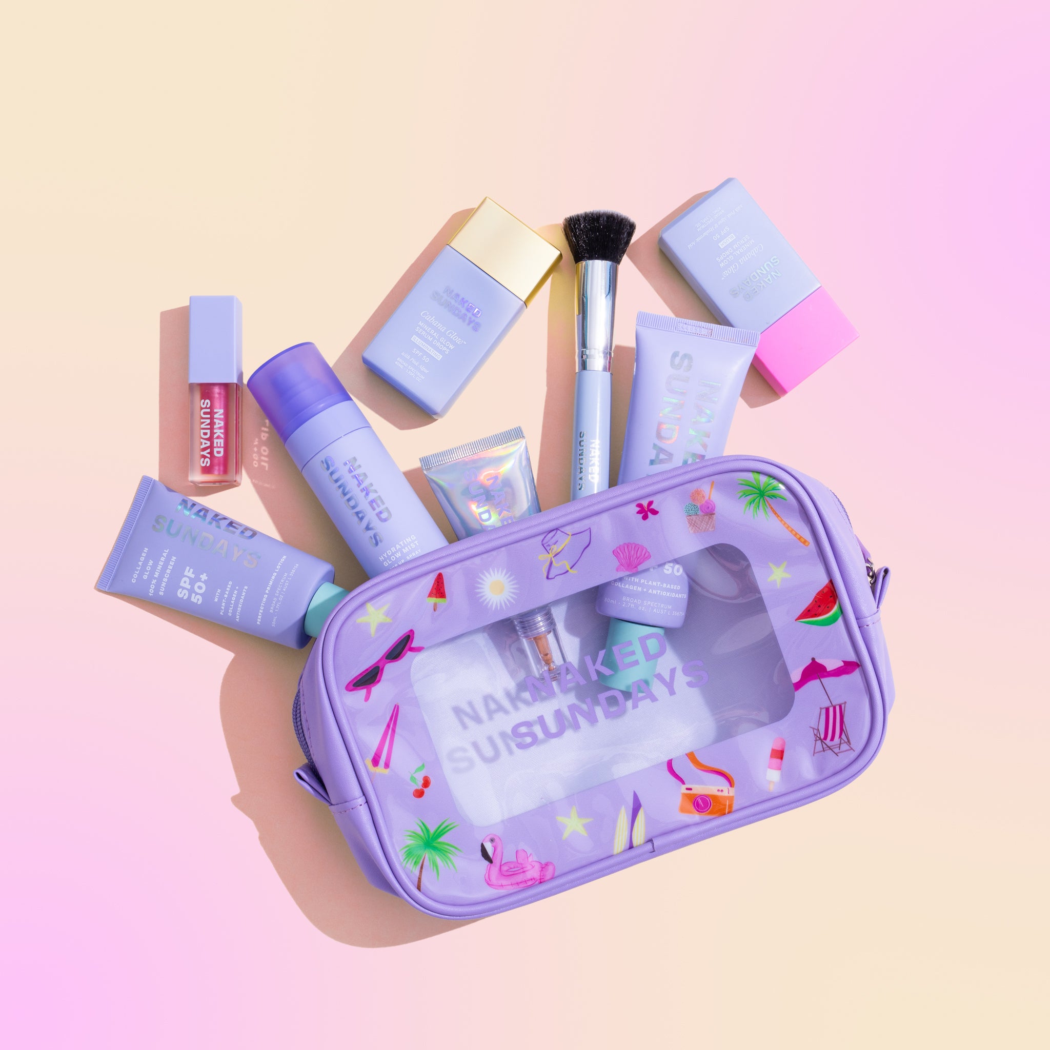 The Ultimate Clear Beauty Bag with our signature print to house all your gorgeous SPF essentials! Re-usable and 100% cute AF.