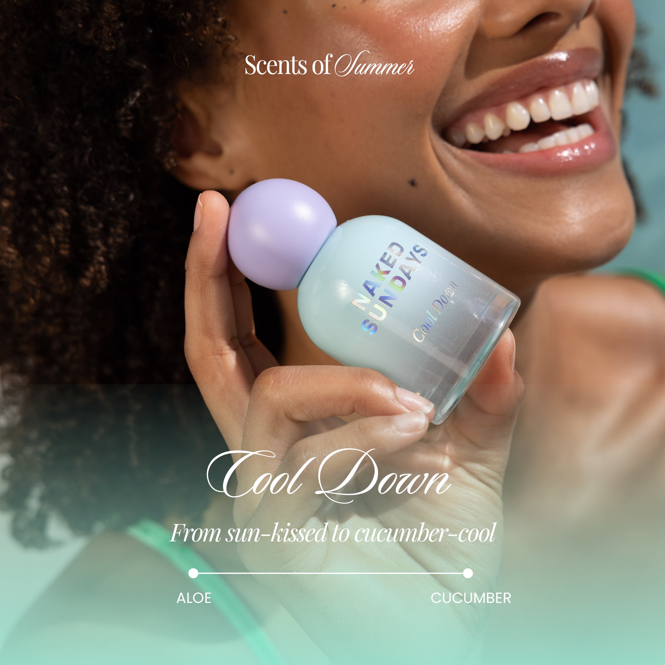 Like slipping into cool sheets after a Summer swim. Cool Down is your bare-skin scent, fresh cucumber and green leaves meet soft citrus for a crisp, cooling opening. A heart of delicate florals and dewy aloe brings that fresh-out-of-the-ocean energy, finished with warm, skin-like musk that lingers softly.