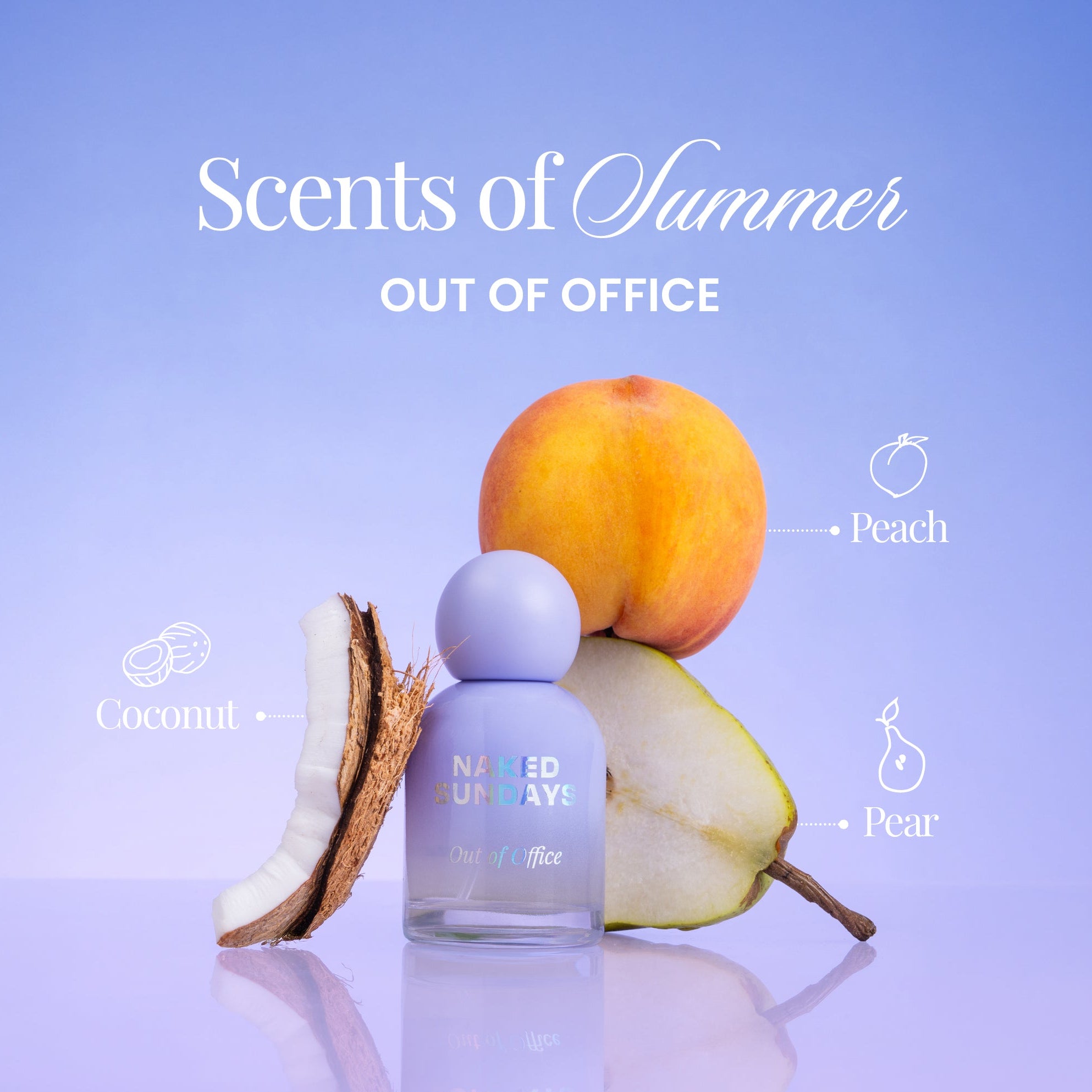 The scent of that OOO auto-reply. It opens with crisp pear and juicy peach, like the first sip of a frozen cocktail. A creamy heart of coconut and fig melts into sun-warmed skin, while soft vanilla and sandalwood linger like golden hour. Flirty, sunkissed and effortlessly cool, this is Summer, deliciously bottled.