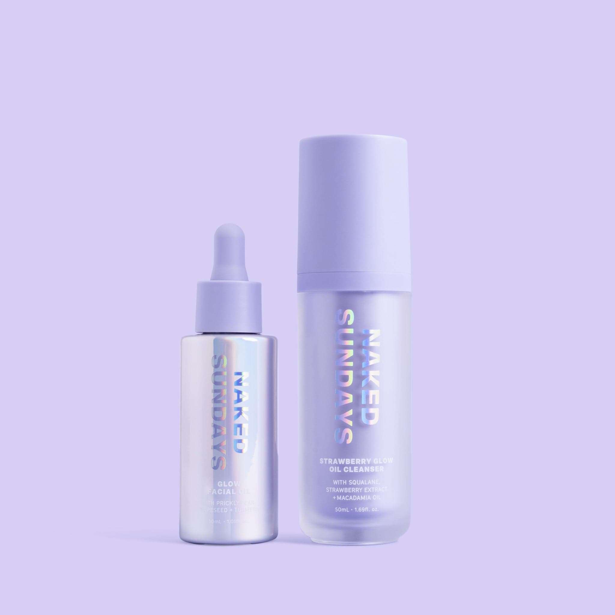 Experience the ultimate in skincare luxury with our Naked Sundays Glow Duo. This bundle features our Strawberry Glow Oil Cleanser and a potent blend of botanical face oils, perfect for both day and night care.